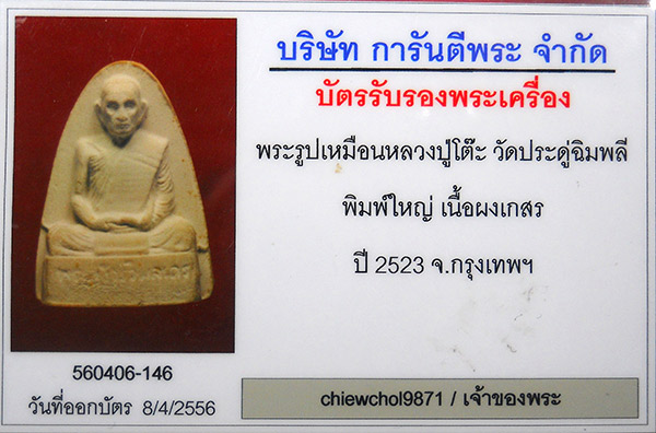 | ชื่อพระเครื่อง : | พระรูปเหมือนหลวงปู่โต๊ะ วัดประดู่ฉิมพลีปี2523 พิมพ์เตารีดใหญ่เนื้อเกสร |