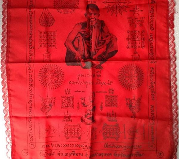 รายละเอียดพระเครื่อง : ผืนใหญ่สีแดง กว้าง 16.5 X 22 นิ้ว พิธีใหญ่เสาร์ ๕ สภาพสวย สมบูรณ์ ใหม่เอี่ยม เดิมเดิมจากวัด ยังไม่ผ่านการใช้ครับ
