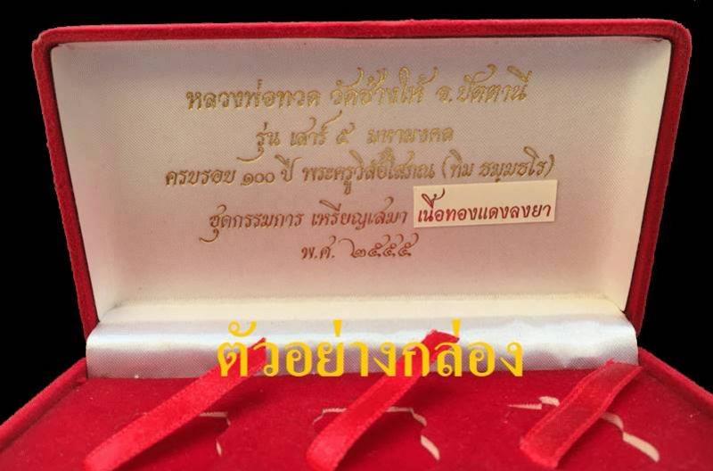 | รายละเอียดพระเครื่อง : | เหรียญเสมา หลวงพ่อทวด วัดช้างให้ รุ่นเสาร์ ๕ มหามงคล ๑๐๐ ปี อ.ทิม เนื้อทองแดงลงยาน้ำเงิน เหรียญกรรมการ หมายเลข ๙๑๗ 2 เหรียญส่งพร้อมกล่องเดิม ***เหรียญเสมา เนื้อทองแดงลงยาสีแดง จำนวนสร้างทั้งหมด ๙,๙๙๙ เหรียญ ๑๐๐ ปี ชาตกาล (พ.ศ.๒๔๕๕-๒๕๕๕) ของพระอาจารย์ทิม หรือพระครูวิสัยโสภณ อดีตเจ้าอาวาสวัดช้างให้ ปฐมเหตุแห่งตำนานการสร้างพระเครื่องหลวงพ่อทวดที่โด่งดัง ต่อมาท่านเจ้าคุณพระสุนทรปริยัติ วิธาน เจ้าอาวาสวัดช้างให้ รูปปัจจุบัน ได้แสดงออกซึ่งความกตัญญูกตเวทิตาคุณ น้อมรำลึกบารมีธรรมหลวงพ่อทวดและพระอาจารย์ทิม ครบรอบ ๑๐๐ ปี ชาตกาล จึงได้จัดสร้างวัตถุมงคล >>>พระหลวงพ่อทวด รุ่นเสาร์ ๕ มหามงคล<<< มีพิธีมหาพุทธาภิเษก วันเสาร์ที่ ๒๐ ตุลาคม พ.ศ.๒๕๕๕ ณ.อุโบสถวัดช้างให้ เวลา ๑๕.๕๕ น. วัตถุประสงค์ในการจัดสร้าง หลวงพ่อทวด รุ่นเสาร์ ๕ มหามงคล ๑.เพื่อน้อมรำลึกคุณูปการของอาจารย์ทิม ๒.จัดซื้อที่ดินขยายอาณาเขต วัดช้างให้ ๓.บูรณปฏิสังขรณ์ซุ้มประตูรอบพระอุโบสถ วัดช้างให้ ๔.สนับสนุนการศึกษาพระปริยัติธรรมแผนกนักธรรม แผนกบาลี ประจำจังหวัดปัตตานี ๕.ส่งเสริมศูนย์การศึกษาพุทธศาสนาวันอาทิตย์ วัดช้างให้ ๖.งานสาธารณประโยชน์ของทางราชการ และประชาชนทั่วไป รายละเอียดพิธีมหาพุทธาภิเษก - วันเสาร์ ที่ ๒๓ มิถุนายน ๒๕๕๕ เวลา ๐๙.๕๕ น. พิธีไหว้ครูบวงสรวงดวงวิญญานสมเด็จหลวงพ่อทวด - วันเสาร์ ที่ ๒๓ มิถุนายน ๒๕๕๕ เวลา ๑๕.๕๕ น. พิธีเททอง ณ หน้าวิหารพลวงพ่อทวดวัดช้างให้ - วันเสาร์ ที่ ๒๐ ตุลาคม ๒๕๕๕ เวลา ๑๕.๕๕ พิธีมหาพุทธาภิเษก ณ อุโบสถวัดช้างให้ พิมพ์เสมา รายละเอียดและจำนวนการจัดสร้าง ดังนี้ ๑. เนื้อทองคำ ลงยาสีแดง จำนวนสร้าง ๒๕๕ เหรียญ ๒. เนื้อทองคำ จำนวนสร้าง ๕๕๕ เหรียญ ๓. เนื้อเงินหน้ากากทอง จำนวนสร้าง ๑,๕๕๕ เหรียญ ๔. เนื้อเงินลงยา จำนวนสร้าง ๒,๕๕๕ เหรียญ ๕. เนื้อเงิน จำนวนสร้าง ๕,๕๕๕ เหรียญ ๖. เนื้อนวโลหะ หน้ากากเงิน จำนวนสร้าง ๒,๕๕๕ เหรียญ ๗. เนื้อนวโลหะ จำนวนสร้าง ๙,๕๕๕ เหรียญ ๘. เนื้ออาปาก้า จำนวนสร้าง ๒๕,๕๕๕ เหรียญ ๙. เนื้อทองแดง จำนวนสร้าง ๙๕,๕๕๕ เหรียญ รายการดังกล่าวยังมีในส่วนชุดกรรมการได้แก่ ๑. กรรมการใหญ่ (๖ เหรียญ) จำนวนสร้าง ๙๙ ชุด (เหรียญทองคำลงยาสีแดง, เหรียญเงิน, เหรียญนวะหน้ากากเงิน, เหรียญทองแดงลงยาแดง,เหรียญทองแดงลงยาน้ำเงิน, เหรียญทองแดงลงยาเขียว) ๒. ชุดกรรมการเล็ก (๓ เหรียญ) จำนวนสร้าง ๘๐๐ ชุด (เหรียญทองแดงลงยาแดง,เหรียญทองแดงลงยาน้ำเงิน, เหรียญทองแดงลงยาเขียว) ๓. ชุดกรรมการแจกคนช่วยงาน (๓ เหรียญ)จำนวนสร้าง ๓๐๐ ชุด (เหรียญทองแดงลงยา, เหรียญ