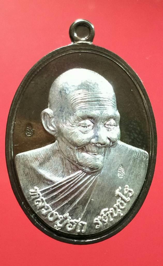 พระภูธร เหรียญหันข้าง หลวงปู่ฮก รตินฺธโร วัดราษฏร์เรืองสุข อ.บ้านบึง จ.ชลบุรี ปี2557 เนื้อนวะหน้าเงิน หมายเลข 233