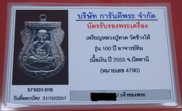 | รายละเอียดพระเครื่อง : | หลวงพ่อทวด วัดช้างให้ รุ่น \\\\\\\\\\\\\\\"๑๐๐ ปีชาตกาลเนื้อเงิน เลข 4790 พร้อมบัตรรับรอง จัดส่ง EMS ฟรี |