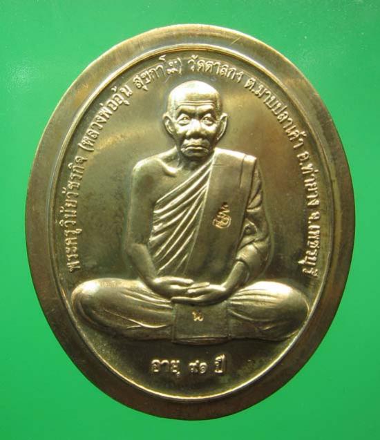 ชื่อพระเครื่อง : เหรียญสรงน้ำ หลวงพ่ออุ้น วัดตาลกง ปี 2550 เนื้อนวะไม่ตัดปีก สวยกล่องเดิม