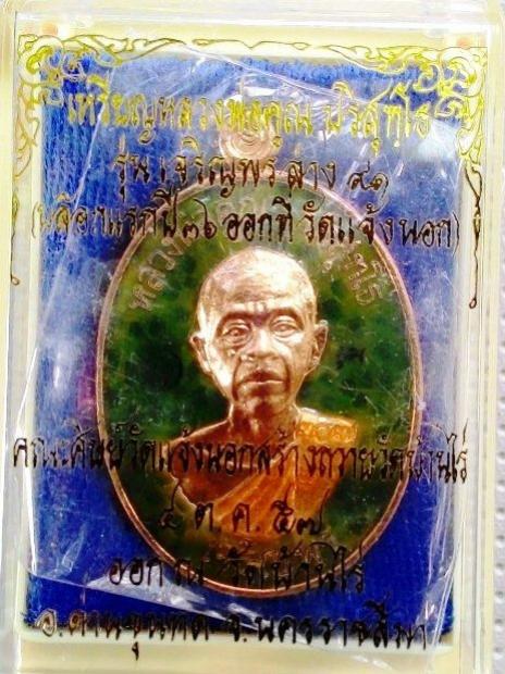 | ชื่อพระเครื่อง : | เหรียญเจริญพรล่าง ๙๑ บล็อกแรก เนื้อทองแดงผิวไฟ ลงยาสีเขียว หมายเลข ๓๐๗ พร้อมกล่อง |